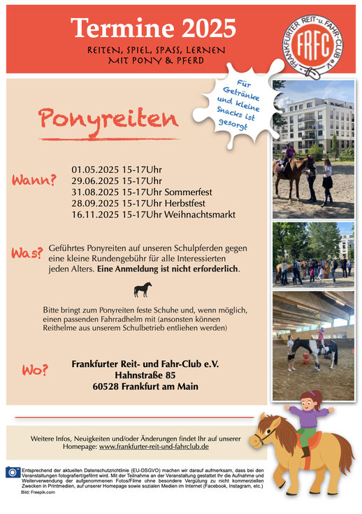 Als städtischer Verein in Frankfurt Niederrad ist dem FRFC e.V. besonders daran gelegen, das Wissen über den Pferdesport weiterzugeben, neue Reiter*innen für diesen Sport zu begeistern und ihn